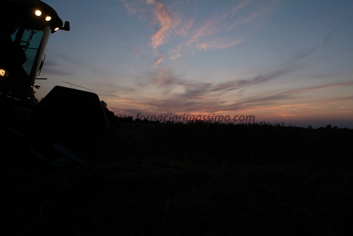 cereali frumento, trebbiatura al tramonto